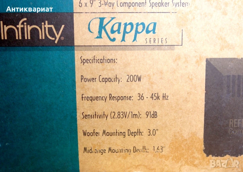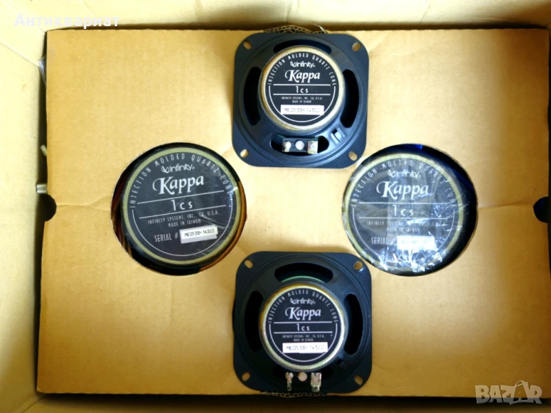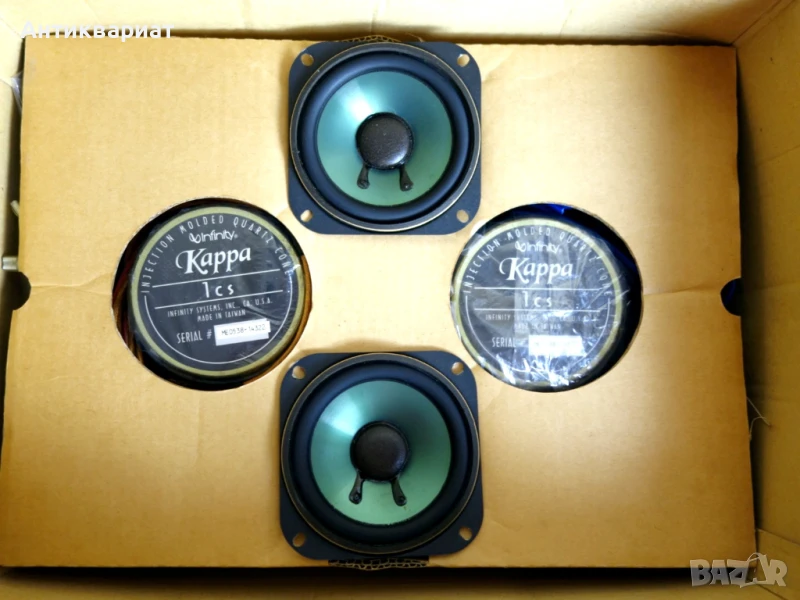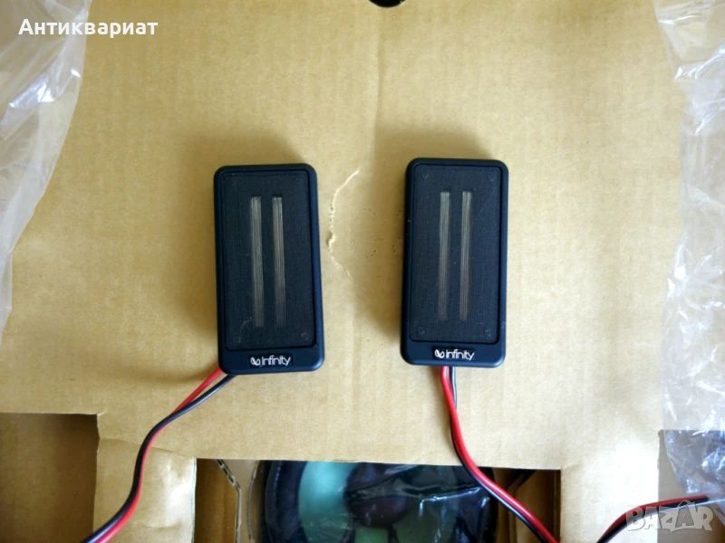 Висок клас комплект говорители за кола INFINITY KAPPA 1 CS, свалени от демонстрационно табло, в оличен вид, буквално както нови. Тествани - работят. Пълен комплект, в оригиналната опаковка, за Хай-Енд звук без компромиси в автомобил, каравана и др. За по-добро описание на състоянието им, моля вижте снимките ми и демонстрационното видео. Изпращам по Спиди и по Еконт, с включена опция за тест.