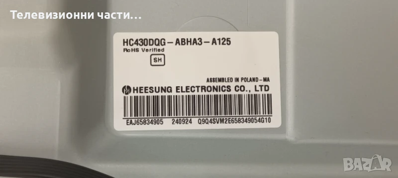 LG 43UR78003LK със счупен екран HC430DQG-ABHA3-A125/EAX70042605(1.0) 4JEBT000-02DN/EAX69502103(1.0)