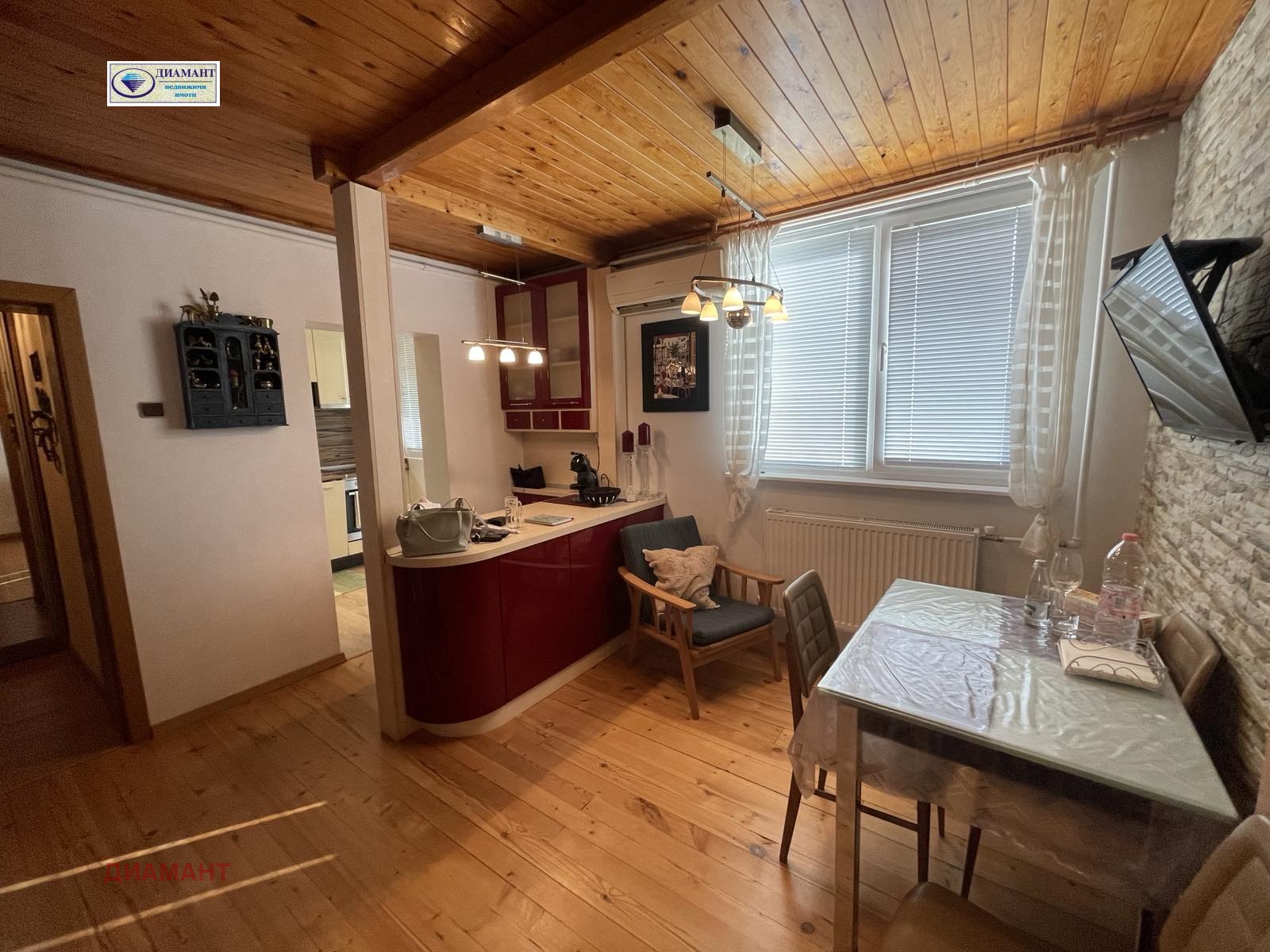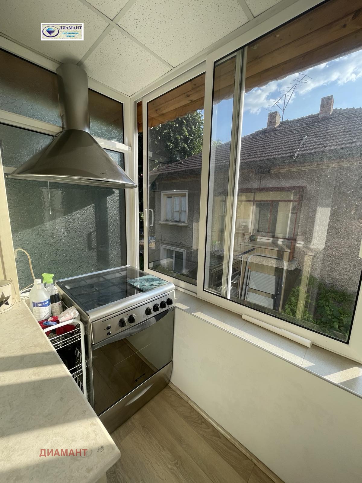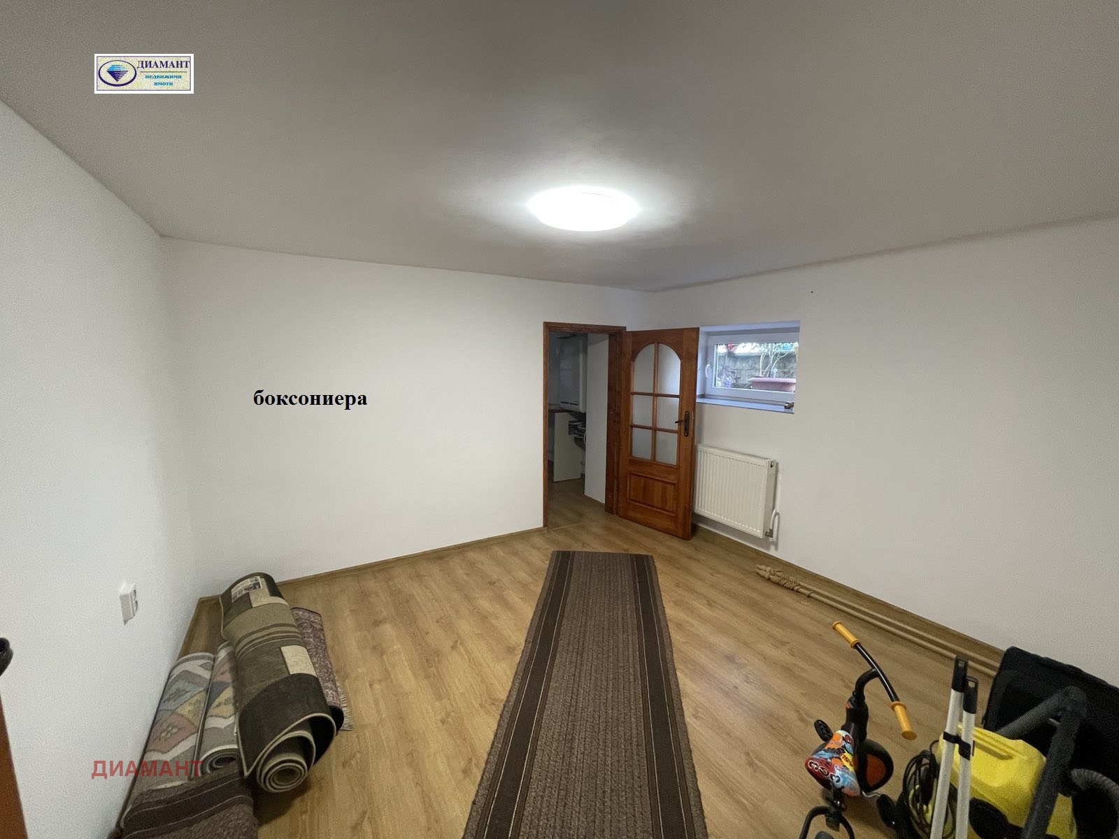 Втори етаж от къща и боксониера на комуникативно място в близост до училище 'Олимпи Панов', Лидл, градски транспорт и много магазини. Цялата къща е санирана, в много добро състояние. Двор - идеални части от 330 кв.м.. Продаваният имот се състои от два самостоятелни обекта - апартамент с площ 87 кв.м. на втория етаж и боксониера с площ 29 кв.м. на приземния етаж. Апартаментът включва голям дневен тракт - хол с кухня и кухненски бокс с тераса, две спални, едната с тераса, санитарен възел и таван с площ 29 кв.м.. Боксониерата включва стая, малка кухня с кухненски бокс и санитарен възел. Таванът е саниран, с мивка, подходящ за фитнес и др. дейности. Отделно в двора на къщата има малък склад и паркомясто. Състояние на имотите: за апартамента - подова настилка в дневния тракт - дървено дюшаме и ламиниран паркет, в спалните - естествен паркет, санитарния възел - теракота. Дограма ПВЦ, отопление и топла вода на ГАЗ и бойлер. Апартаментът се предлага полуобзаведен; за боксониерата - под ламиниран паркет и теракот, ПВЦ дограма, СКШ-та в бокса. Реф. 6506