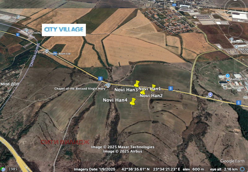 Имот за продажба в с.Нови Хан в близост до главен път I 8 и Pro Cinema studios.