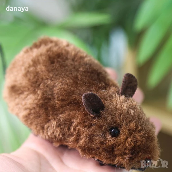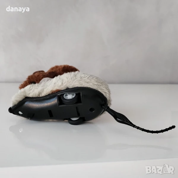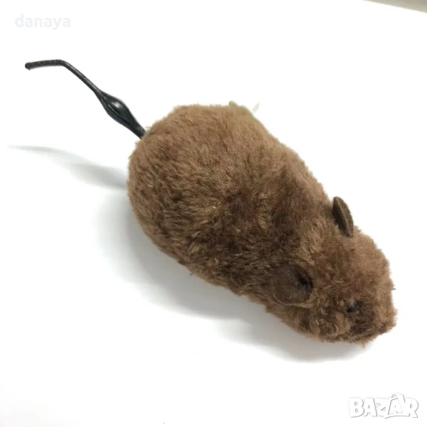 Изкуствена мишка с колелца – забавна и реалистична играчка с дължина 10 см, идеална за игри и декорация. Основата е изработена от пластмаса, а горната част е покрита с мек, пухкав плат за по-естествен вид. Разполага с черна опашка и две вградени колела отдолу, които ѝ позволяват да се търкаля по равни повърхности. Предлага се в два цвята – кафяв и сив.