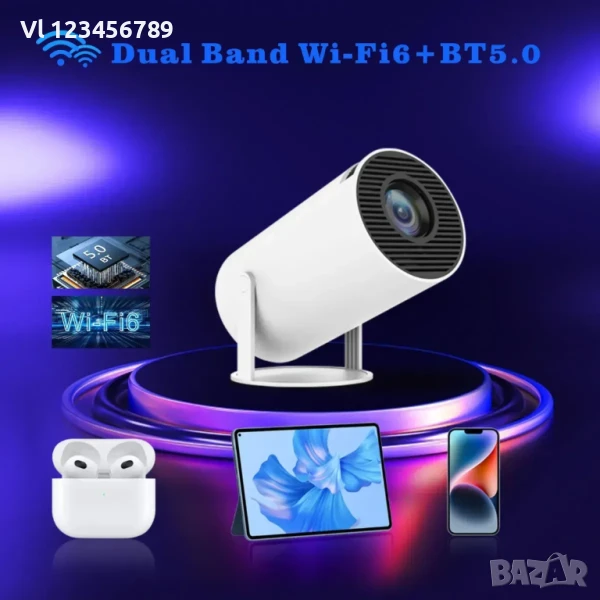 Смарт преносим видео проектор Android 11.0 / 1GB RAM / 8GB ROM