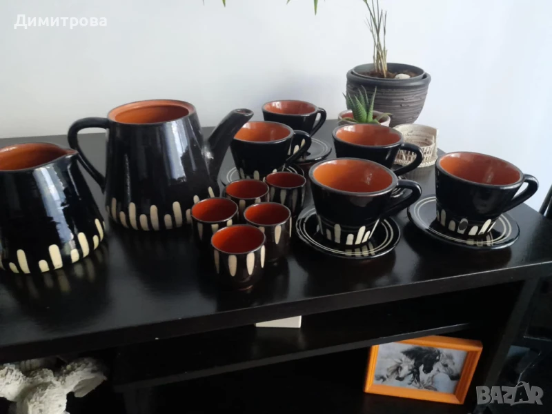 Стар комплект за кафе и ракия глинена керамика, снимка 1 - Сервизи - 50884986 Стар комплект за кафе и ракия глинена керамика, снимка 2 - Сервизи - 50884986 Стар комплект за кафе и ракия глинена керамика, снимка 3 - Сервизи - 50884986 1/3