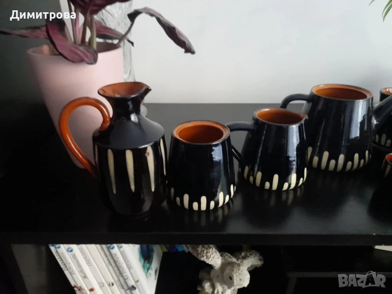 Стар комплект за кафе и ракия глинена керамика → Обява 50884986