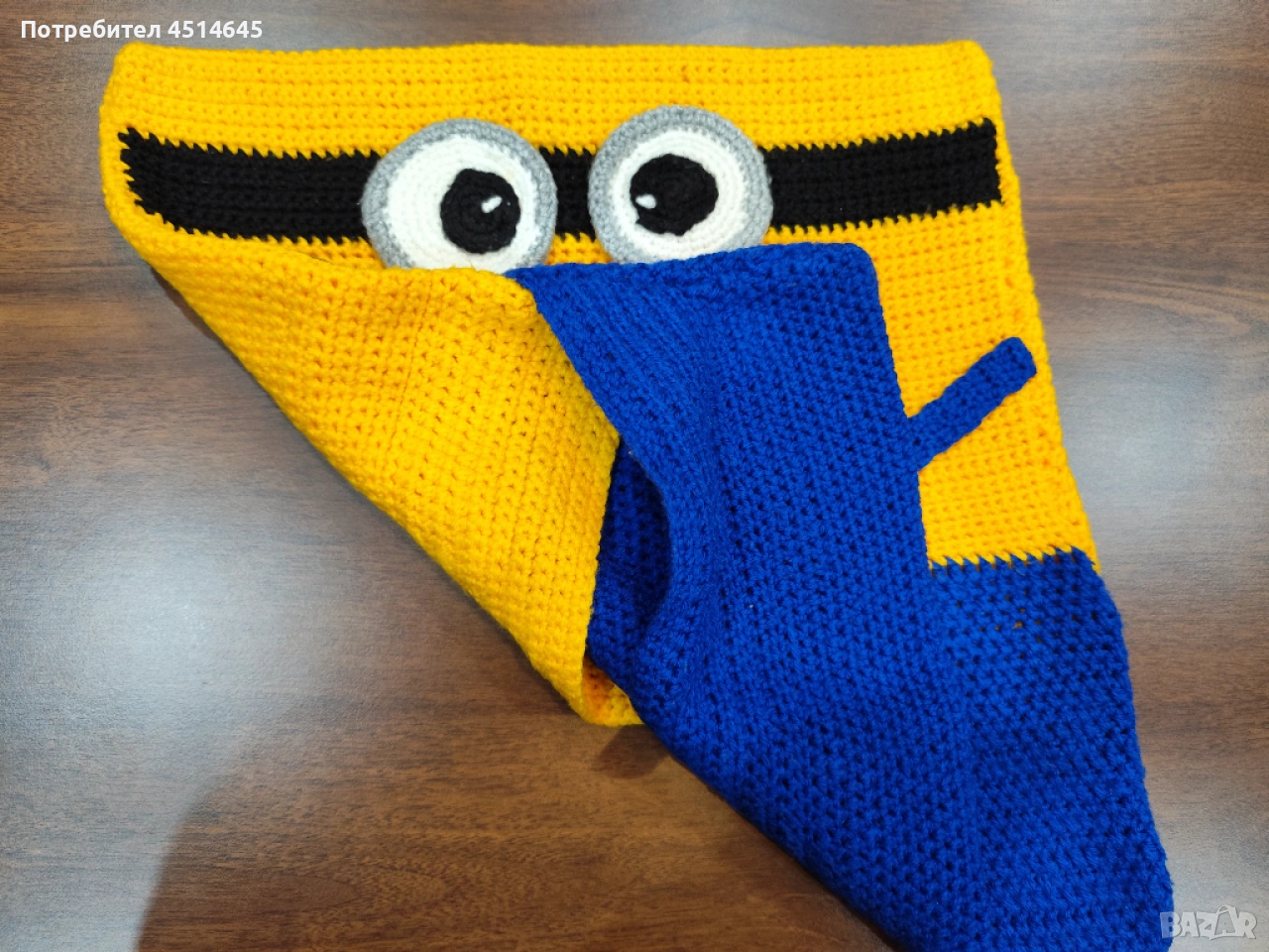 Ръчно плетена детска калъфка за възглавница "миньон", 50/50 см.