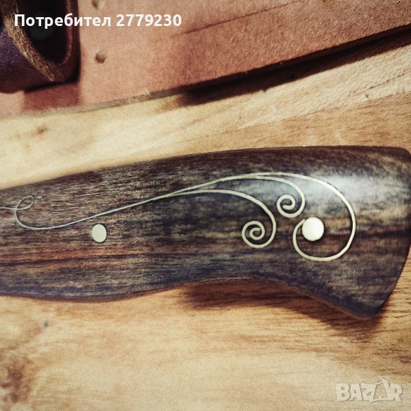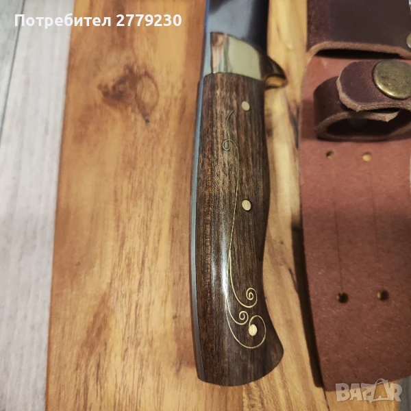 Нож за лов, риболов, туризъм, ръчна изработка на Майстор Павел Неделев, с красиви инкрустации на дръжката от орех. Дължина на острието 12 см., обща дължина 25 см. С преглед и тест преди заплащане. Погледнете и другите обяви с много красиви масивни и истински ножове!
