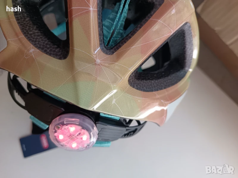 Технически данни: Унисекс каска за възрастни, тегло 275 г, цвят син арт, размер S = обиколка на главата 51-55 см
