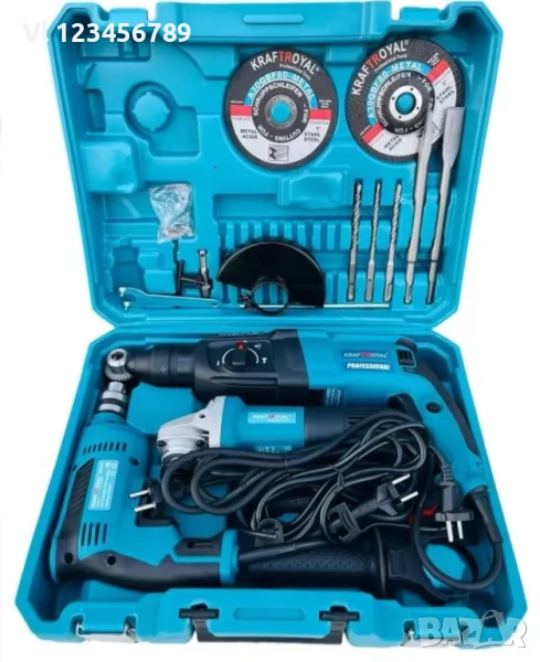 3в1 Комплект Перфоратор, Ъглошлайф 125мм и Бормашина 1400W KraftRoyal