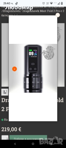 Време за зареждане на батерията: ~ 2 часа