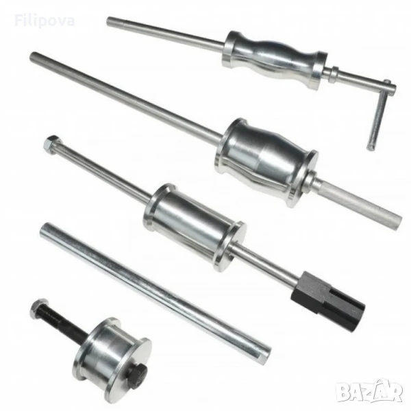 3 различни плъзгащи чука1,6 кг, дължина 160 мм.;2,7 кг, дължина 460 мм.;5,1 кг, дължина 600 мм.;2 издърпващи зъбци с отвор за вилка13,7 x 18 мм, дължина 105 мм.;12,7 x 19 мм, дължина 130 мм.;5 бр. шлицови 6-точкови 1/2″ вложки, дължина 100 мм размери 25 – 27 – 28 – 29 – 30 мм.;Екстрактор за инжектори, втулков дизайн, с черупки външен диаметър 35 мм.;вътрешен диаметър 29 мм .;Адаптер за издърпване на шпиндела M17 x 1.0 с външна резба M27 x 1.0 (3 бр.);Адаптер за издърпване M25 x 1.0 с вътрешна резба M27 x 1.0 (3 бр.);Плъзгащ се адаптер за вътрешен, външен и нокътен екстрактор.