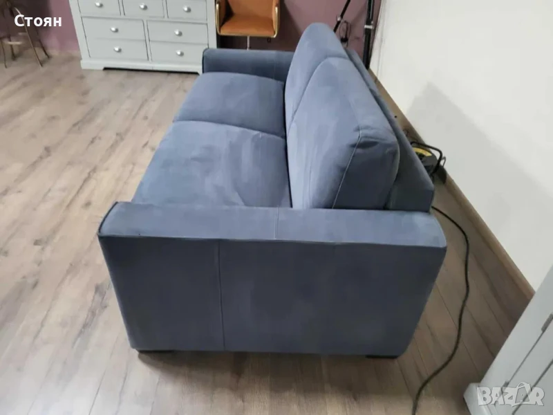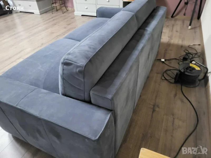 Сив диван тройка от плат набук с функция сън