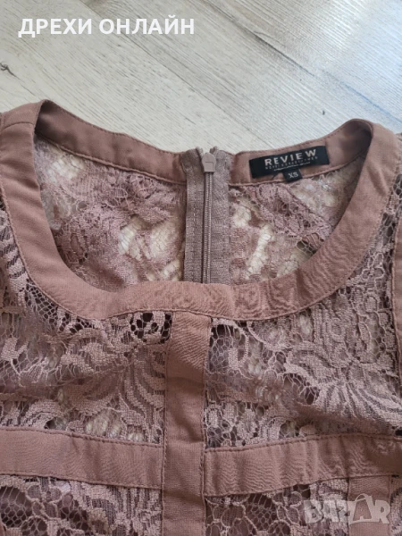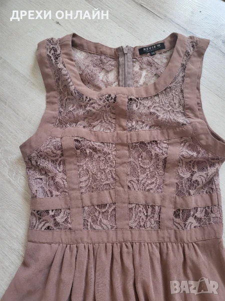 Елегантна кафява рокля, много нежна и красива. Обличана е няколко пъти. Размер ХС. Без забележка.