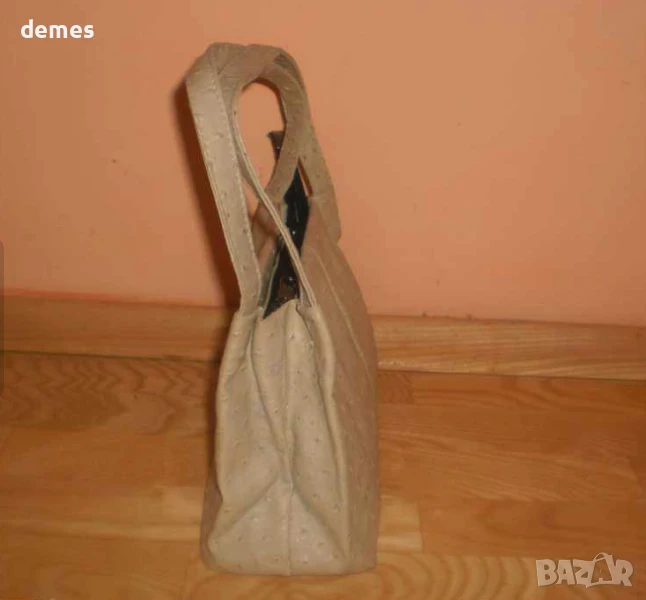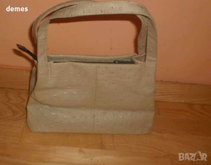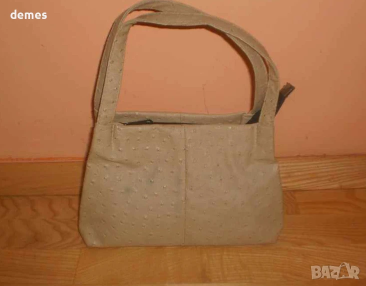 Чантата е изработена от естествена кожа на щраус .