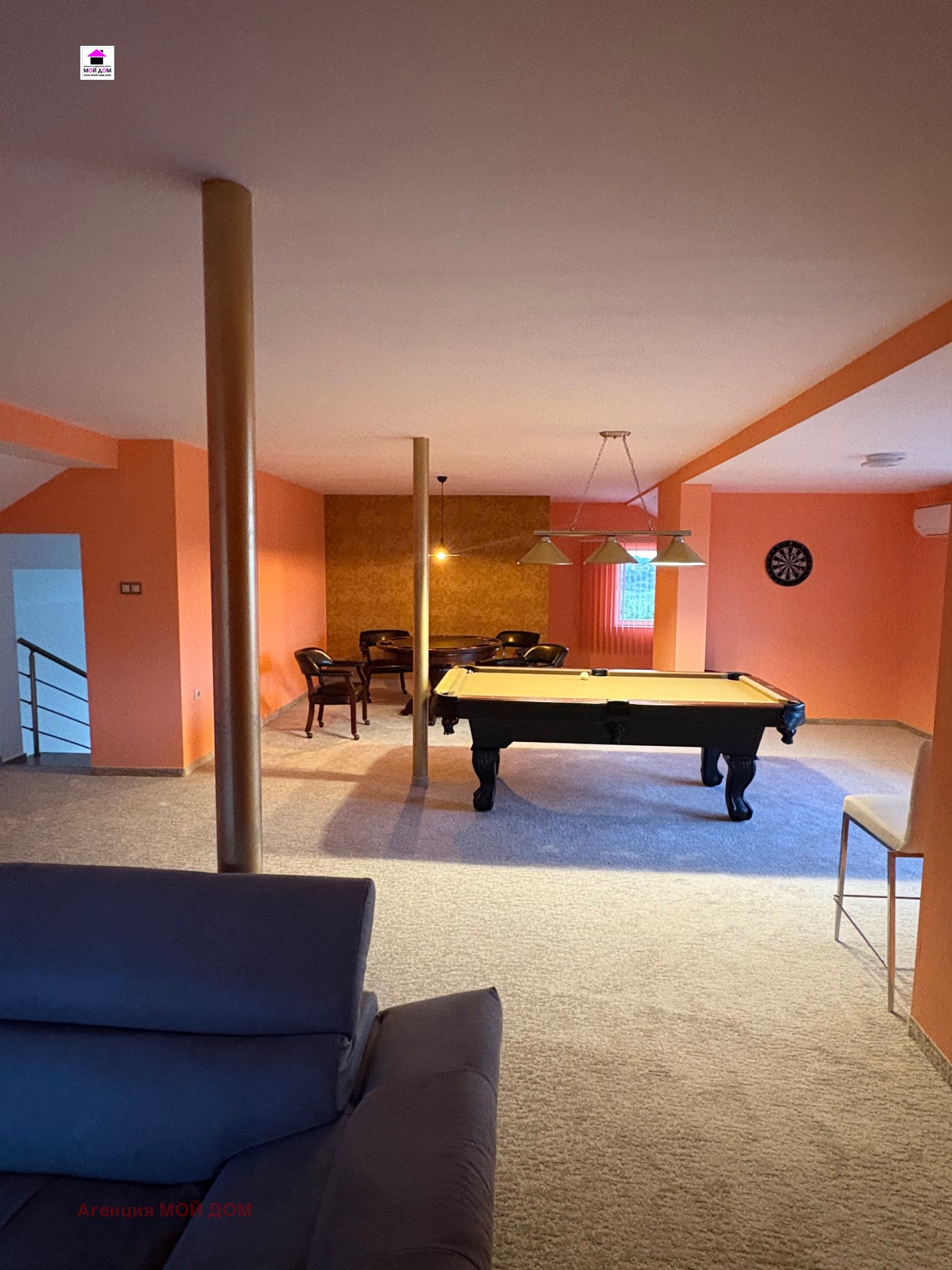 Агенция Мой Дом продава монолитна къща на 3 етажа, състояща се от: първи етаж-предверие, кухня и трапезария с излаз към двора, хол и тоалетна с перално помещение. На втори етаж има 3 спални, като една от тях е с дрешник и баня с тоалетна. Третият етаж представлява голямо помещение, използвано, като зона за релакс и развлечения. Към имота има маза и гараж. Продава се с наличното обзавеждане и техника.