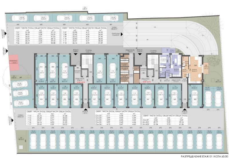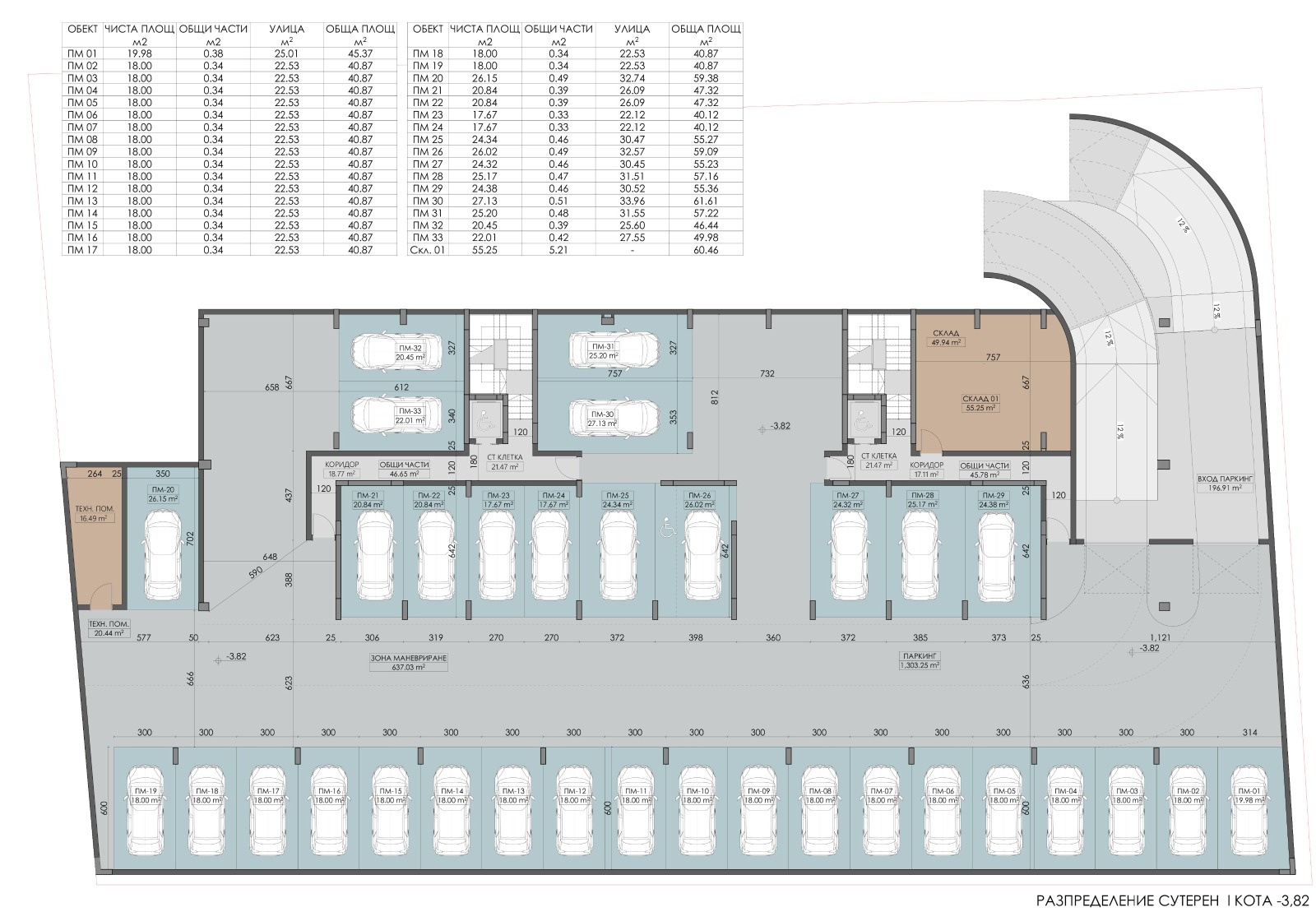 Възможност за закупуване на паркоместа на партер или в сутерен, както и самостоятелни гаражи.