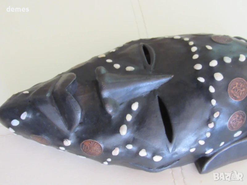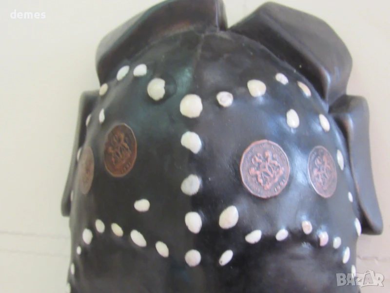 Декорирана е с бронз, кобо/нигерийска монета, която вече не се използва и е