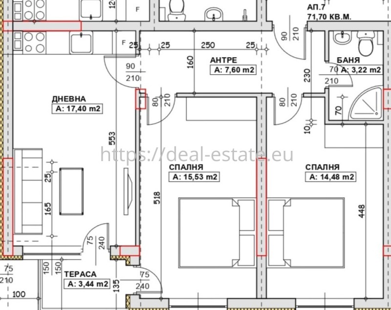 Обща площ: 85,61 кв.м., от които, чиста площ 71,70 кв.м. и Общи части 13,91 кв.м.