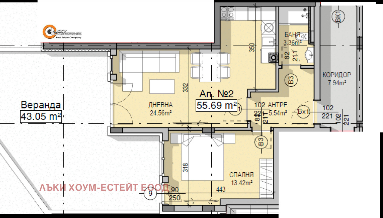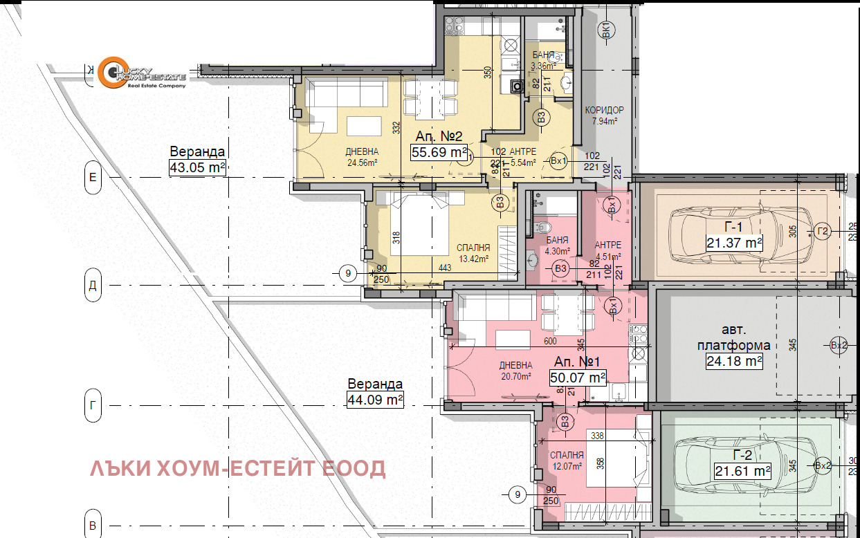 Лъки Хоум естейт представя продажба на просторен четиристаен апартамент с прилежащ двор и два гаража в новострояща се сграда в Кръстова вада един от най-предпочитаните и бързо развиващи се квартали на София. Локацията е отлична: само на 5 минути пеша от Мол Парадайс и метростанция, близо до Билла и с удобен достъп до главни булеварди и градски транспорт. Имотът представлява два обединени двустайни апартамента на партер с чиста застроена площ 105,76 кв.м (125,49 кв.м с общите части) и прилежащите им дворчета общо по 87,14 кв.м. Настоящото разпределение включва две дневни, две спални, две бани с WC и две веранди с излаз към двора.