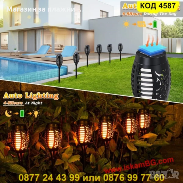 Превърнете всяка градина, тераса или алея в място на уют и магия! Нашата соларна лампа тип факел не само изглежда като истински огън, но и работи изцяло със слънчева енергия – без кабели, без сметки за ток и без усилия!