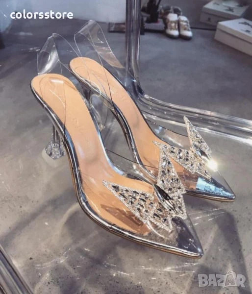 Сандали на ток - прозрачен силикон със сребрист акцент - 9020