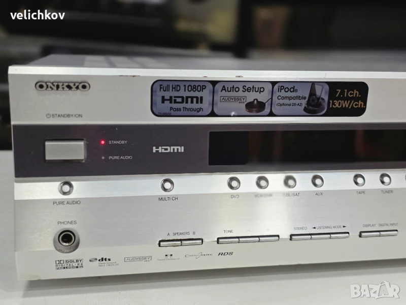 Продавам Onkyo TX-SR505E – 7.1 AV ресивър, НЕРАБОТЕЩ. Така е внесен, така си стои – светва лампичката на Standby и до там. Никаква реакция, никакъв звук, никакъв пушек – просто тишина.