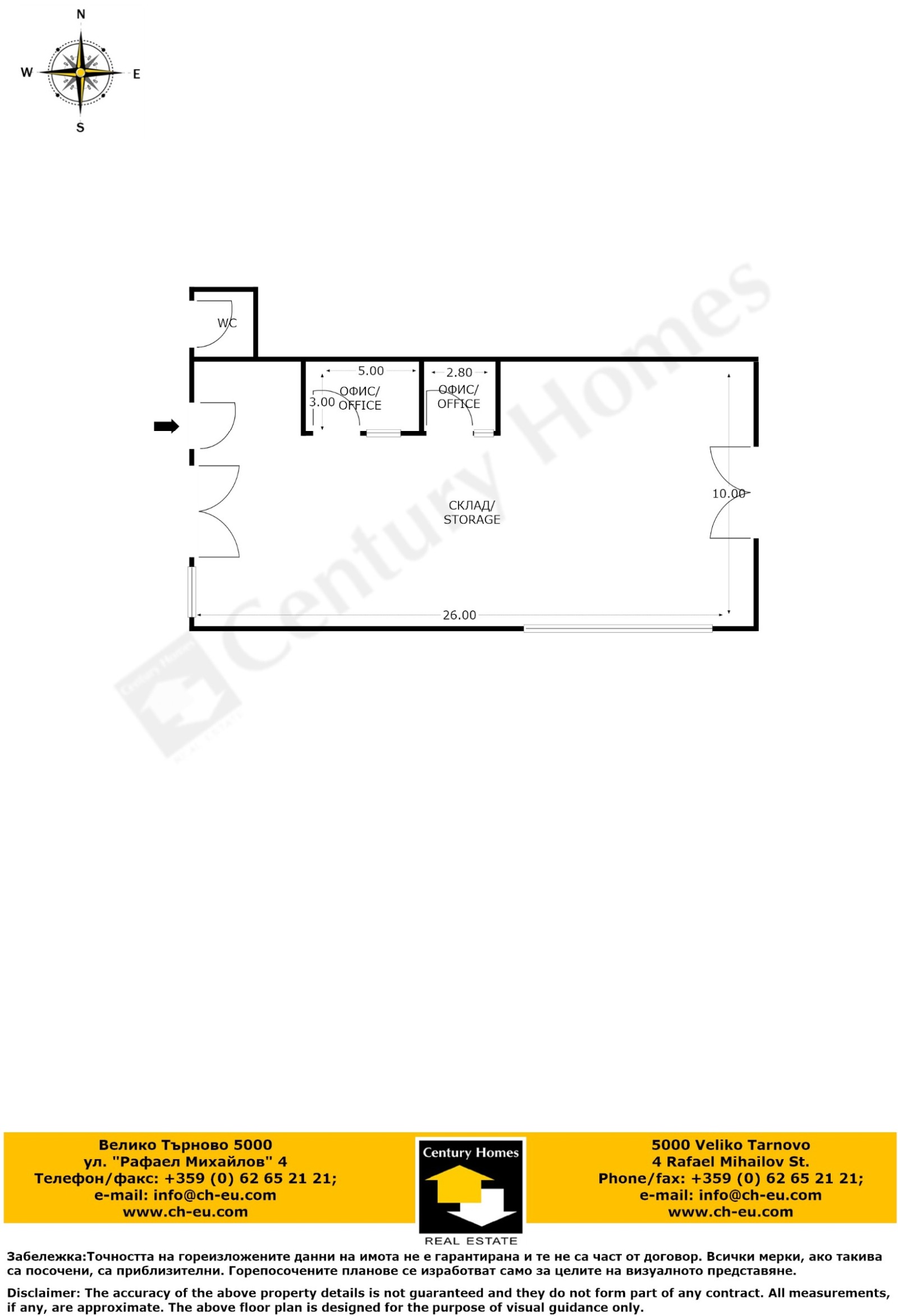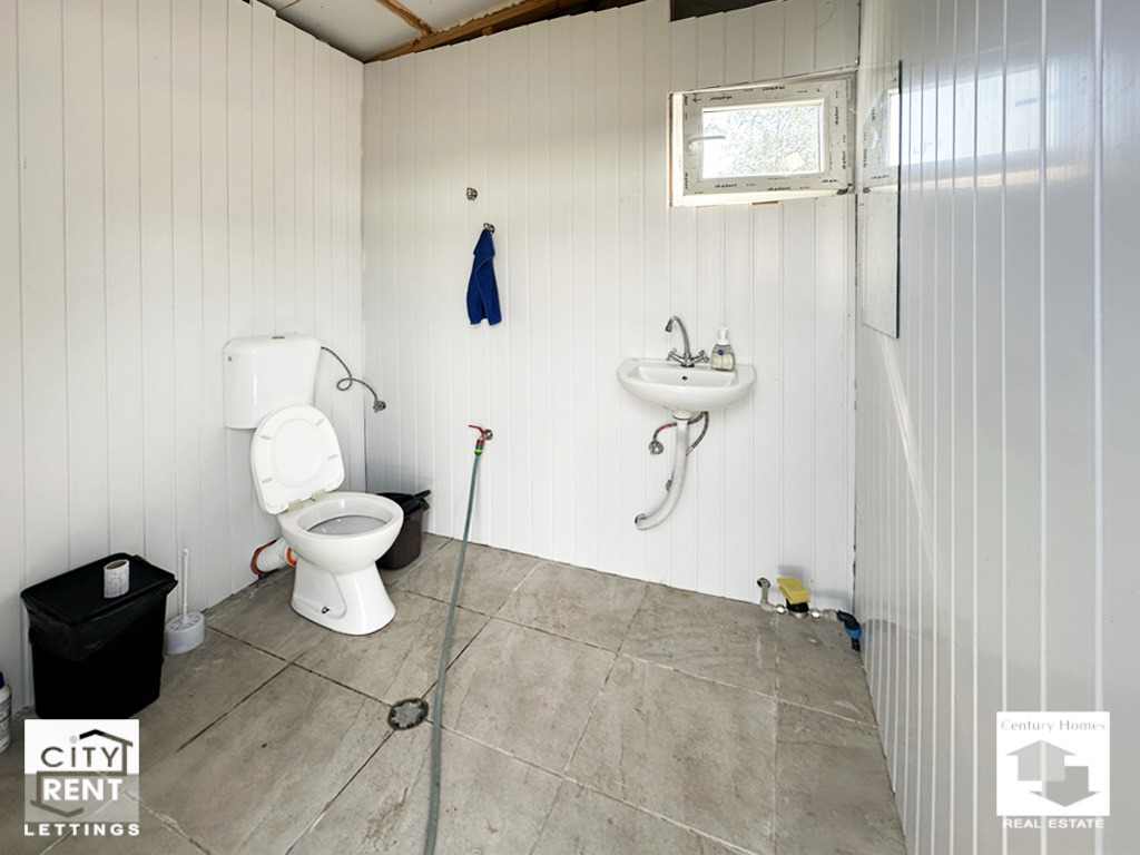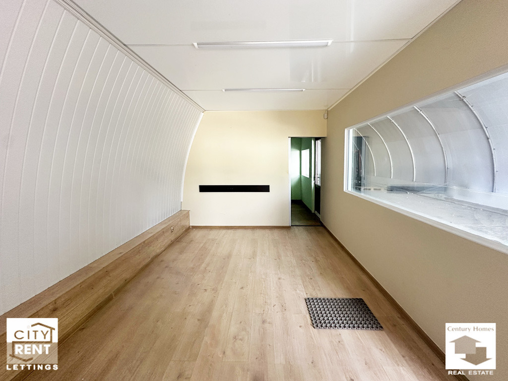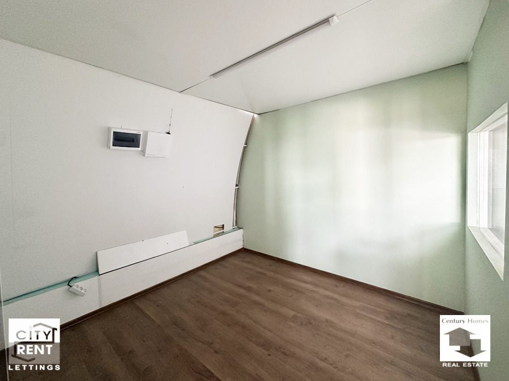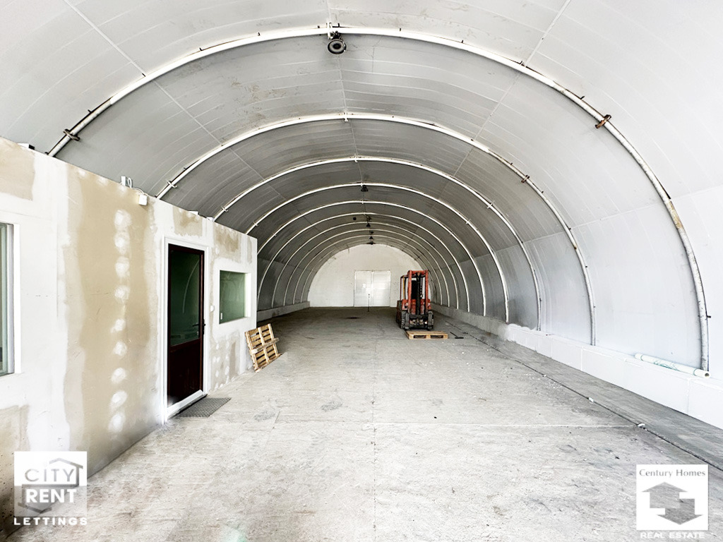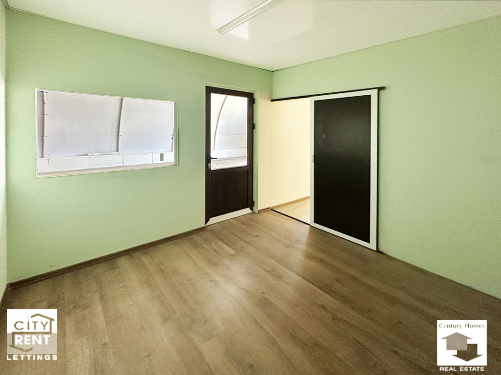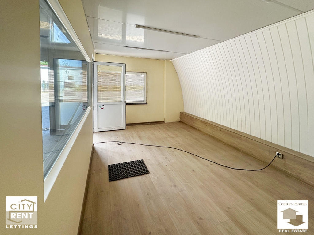 Допълнително удобство предоставят два вътрешни офиса, изградени в самото помещение. Те са завършени с ламинат, стени с латекс, PVC дограма и са готови за мебелиране, което прави имота особено подходящ за фирми, нуждаещи се от административна част в самия склад.