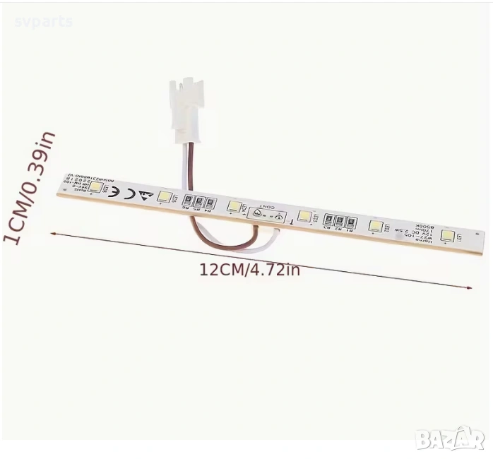 - LED осветление с 3-LED лента с куплунг 160x10mm, модел 1629348, DC12V/1.5-2W, съвместимо с хладилници LG, Gorenje, Hisense, Amica.