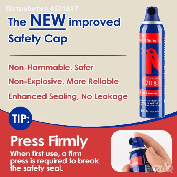 Всеки флакон съдържа до 75 използвания, благодарение на екологичен и безопасен газ R134a, който е не токсичен, не запалим и леко ароматизиран с цитронела – без неприятни миризми за вас и вашия любимец.