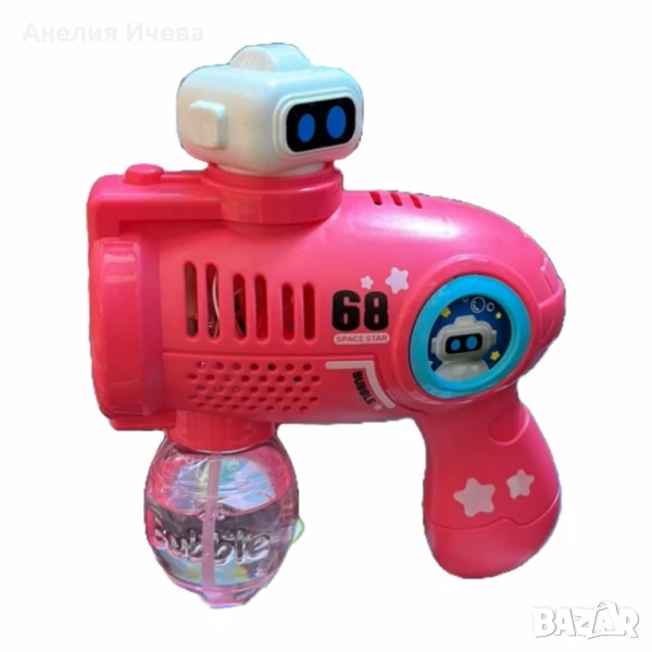 Материал: Висококачествена пластмаса;Брой отвори за балончета: 32;Светлинен ефект: Да;Музикален ефект: Да;Захранване: Работи с AA батерии или акумулаторна литиева батерия;Размер на продукта: 15 x 20,5 x 8 см;Размер на опаковката: 16 x 8,2 x 15 см;Разтвор за балончета: 80 мл;Гаранция: 12 месеца.