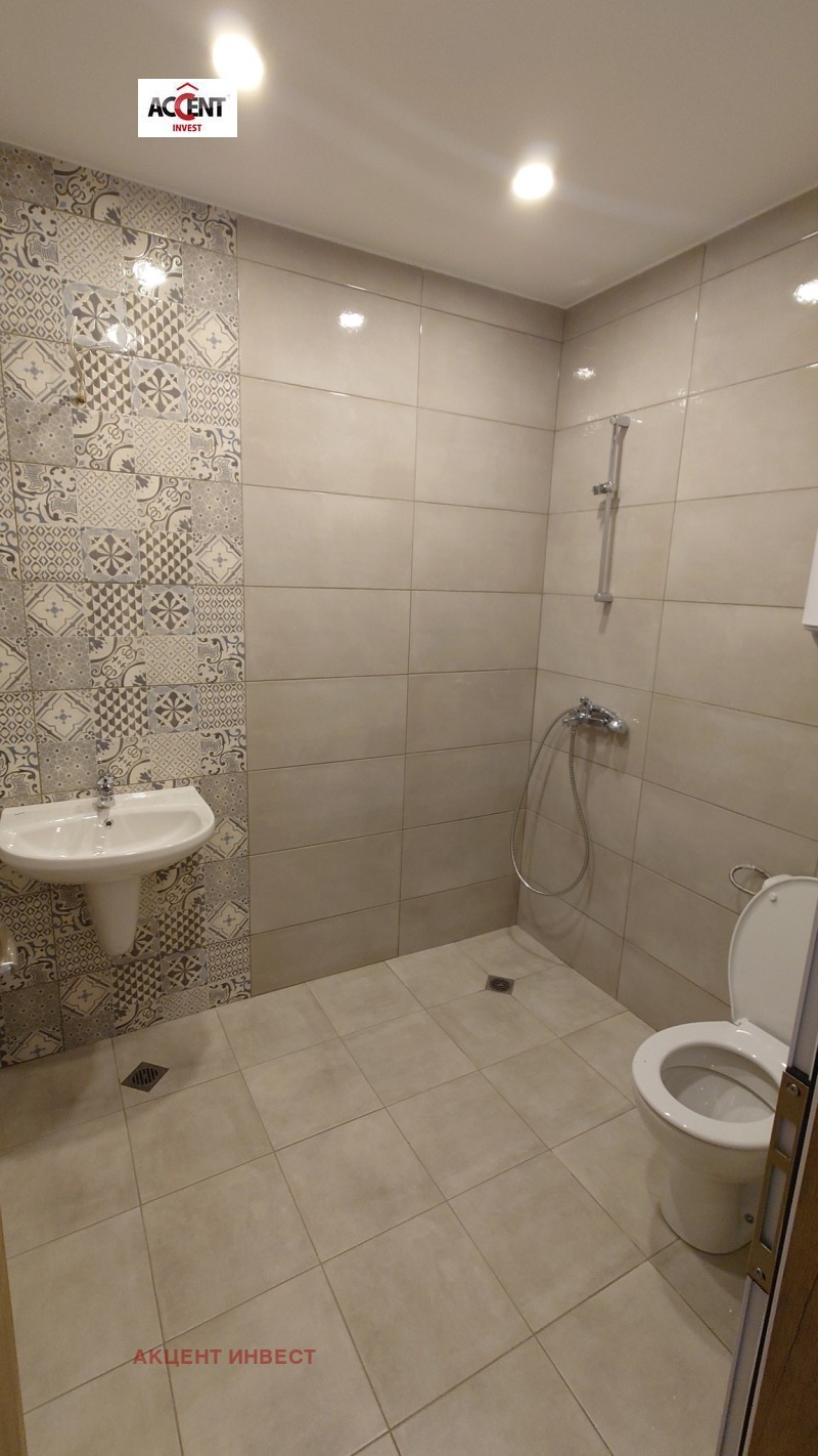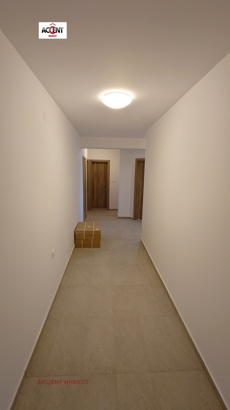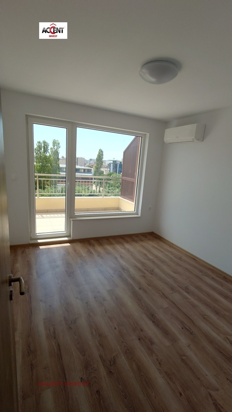 KOD 21460 'Акцент Инвест' Ви предлага офис помещение под наем след 'Гранд Мол'. Имотът е с обща площ от 118 кв.м. и се намира на 5-ти етаж в нова сграда. Състои се от коридор, три работни помещения, баня с тоалетна, тоалетна, килер, тераса пред двете стаи. Имотът се предлага без обзавеждане, посочената цена е без включен ДДС. Обектът е оборудван с бойлер, два климатика, СОТ система, щори. Допълнително се заплаща такса поддръжка, допълнително може да се наеме паркомясто.