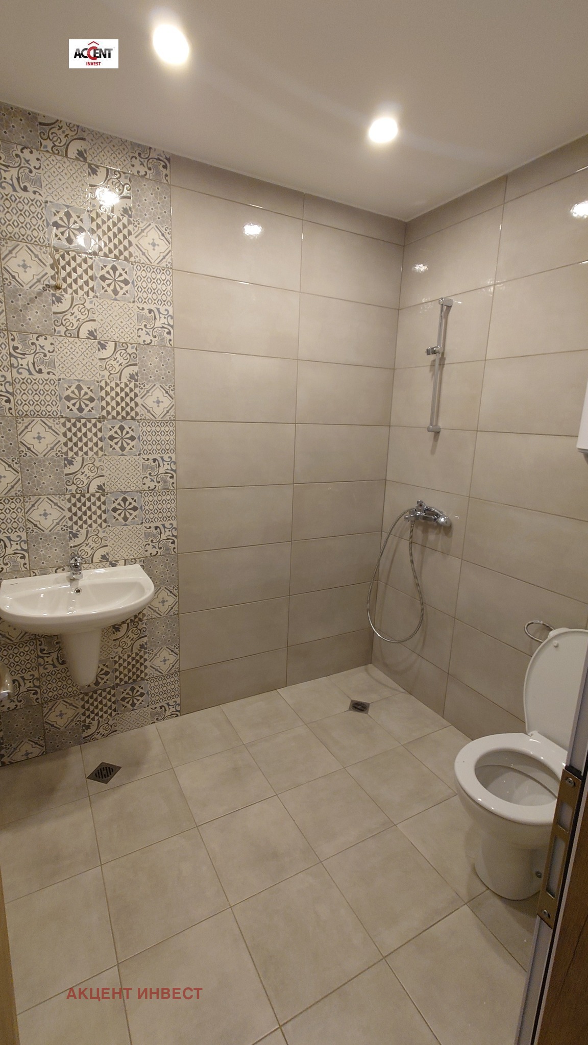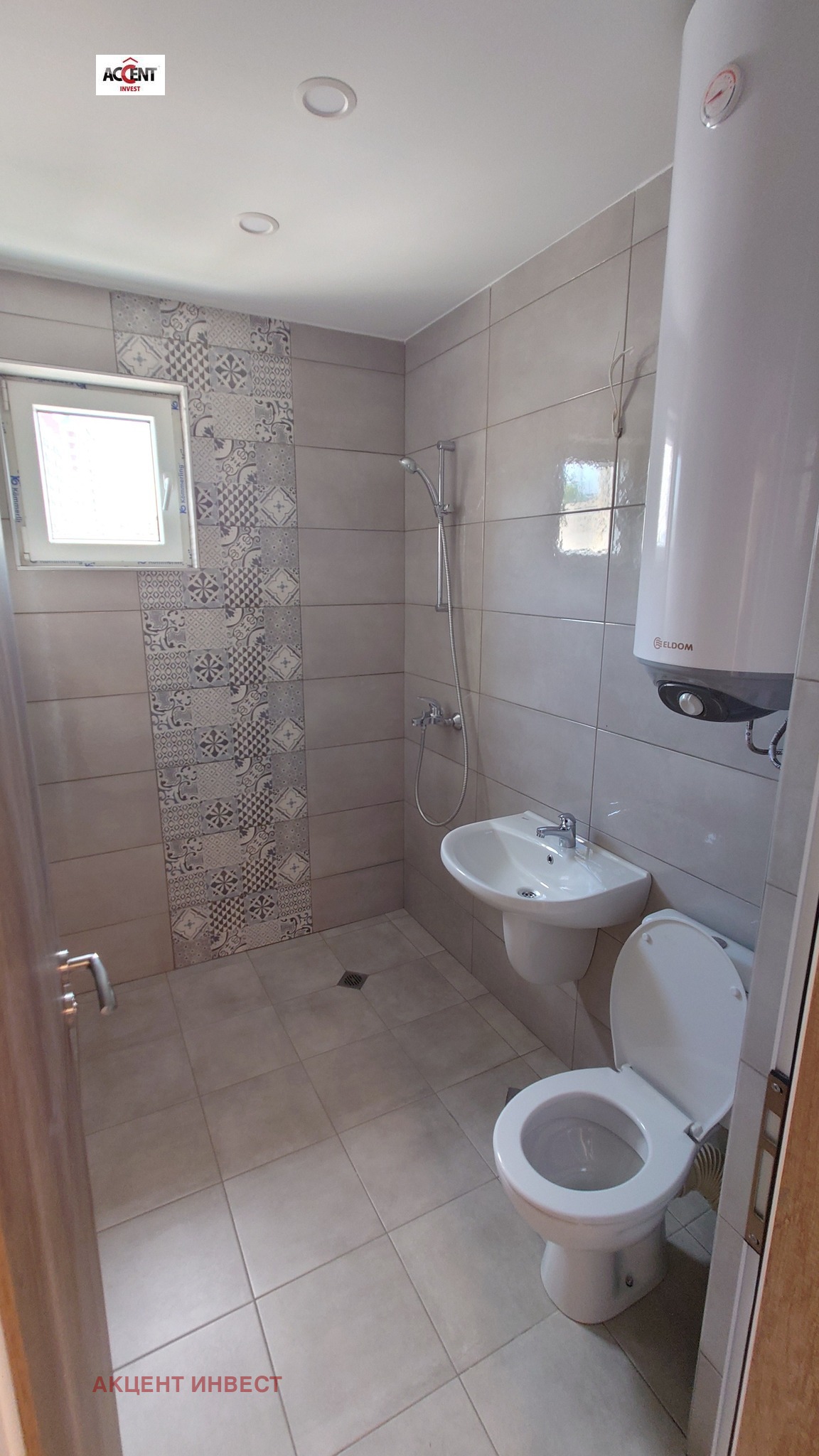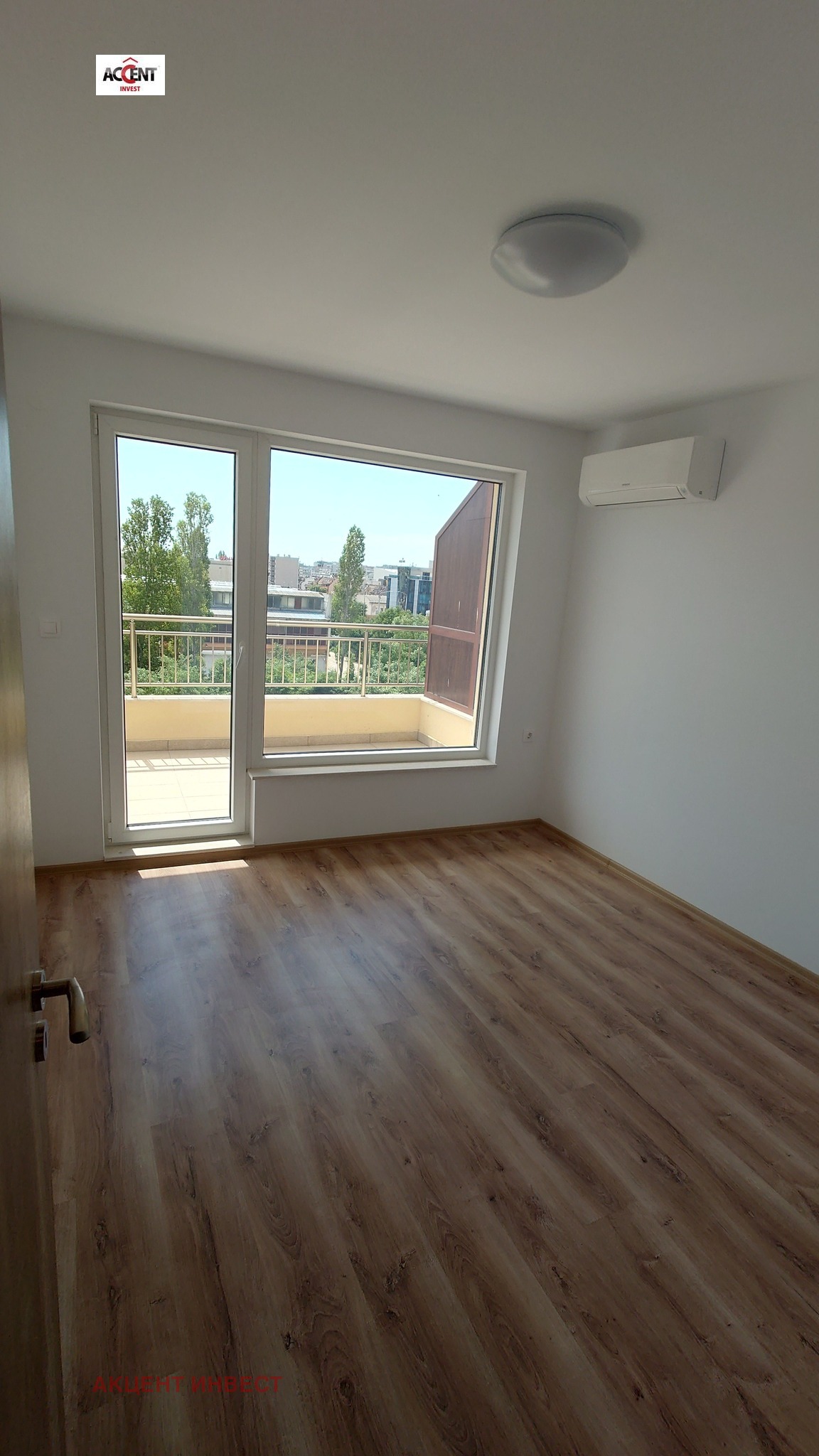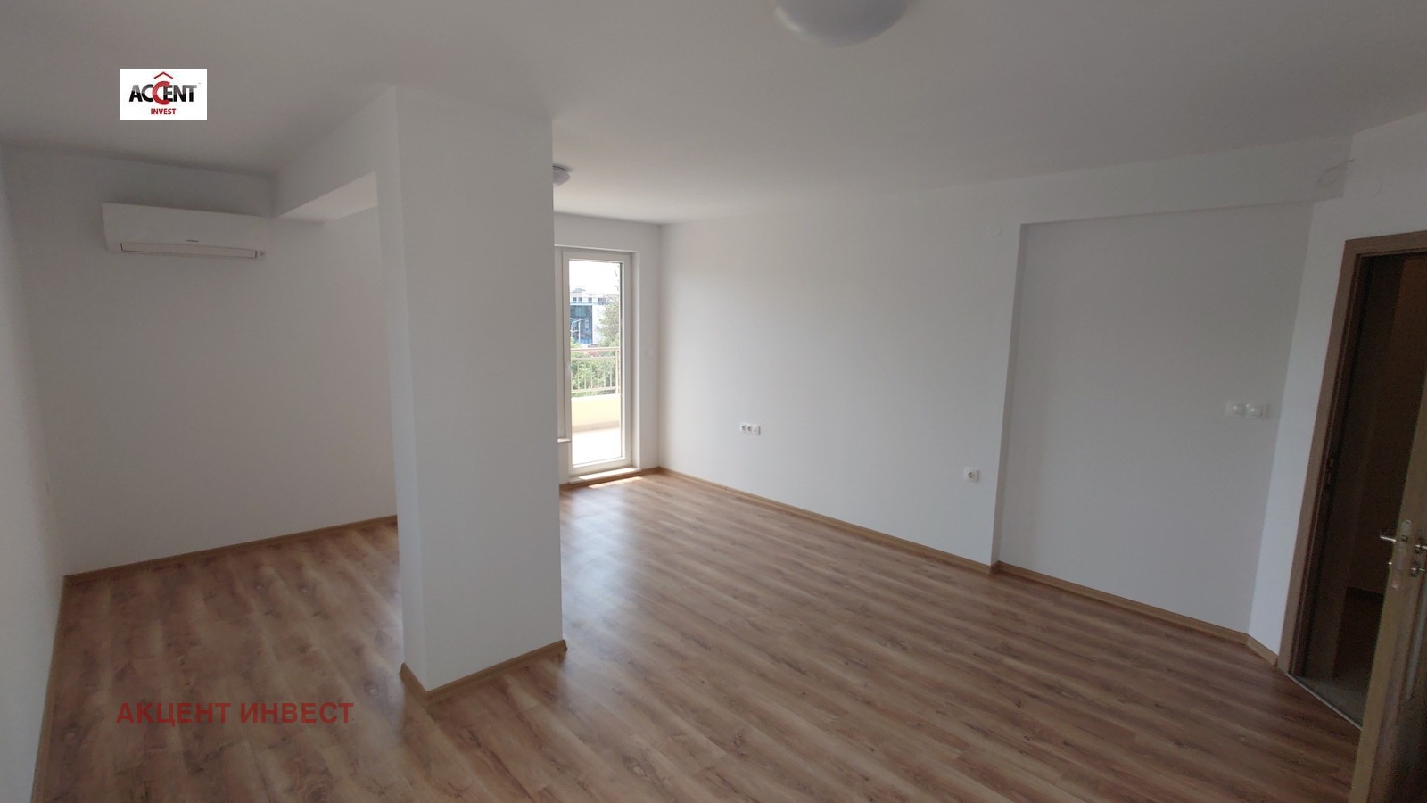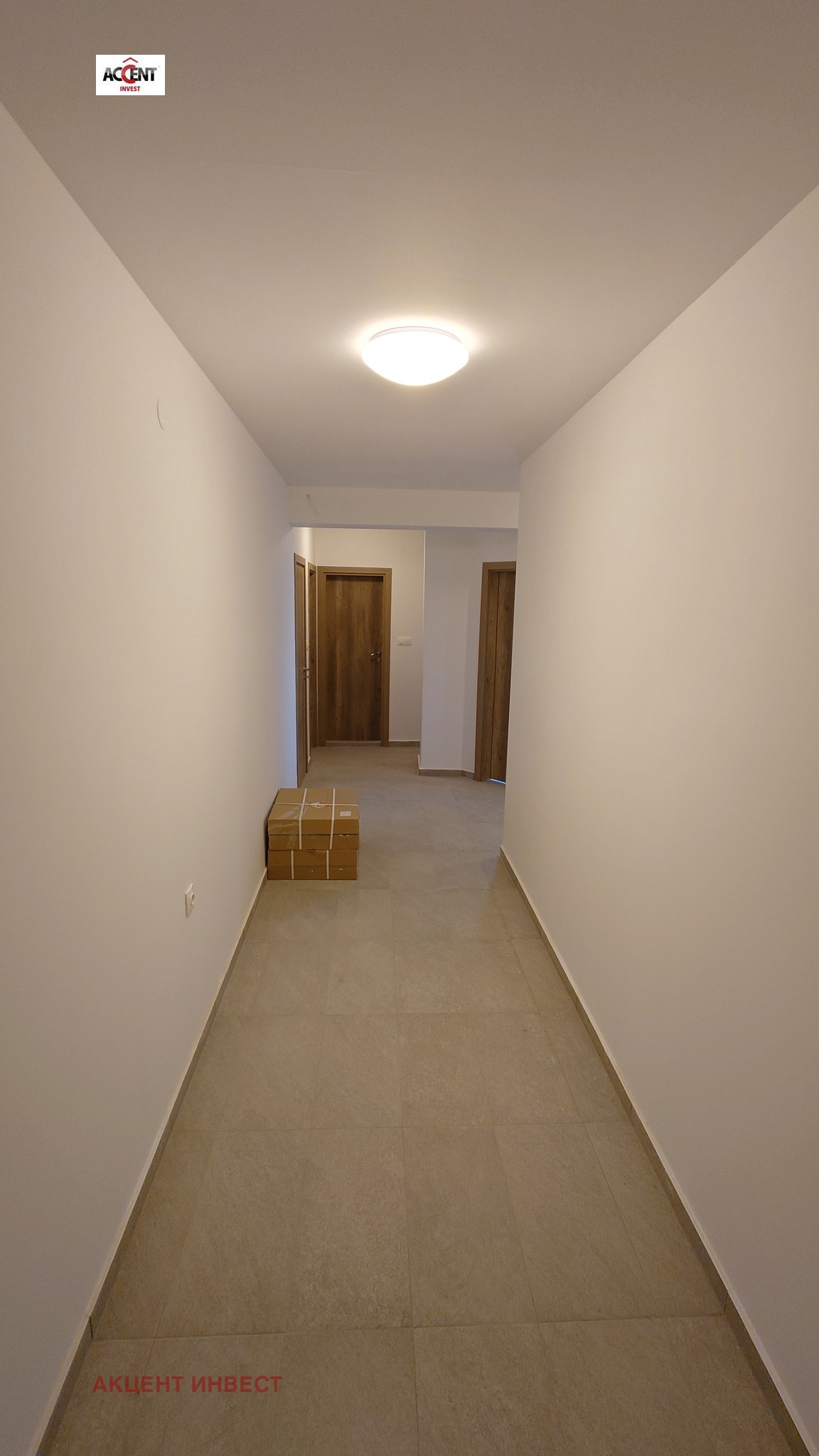KOD 21460 'Акцент Инвест' Ви предлага офис помещение под наем след 'Гранд Мол'. Имотът е с обща площ от 117 кв.м. и се намира на 5-ти етаж в нова сграда. Състои се от коридор, три работни помещения, баня с тоалетна, тоалетна, килер, тераса пред двете стаи. Имотът се предлага без обзавеждане, посочената цена е без включен ДДС. Обектът е оборудван с бойлер, два климатика, СОТ система, щори. Допълнително се заплаща такса поддръжка, допълнително може да се наеме паркомясто.