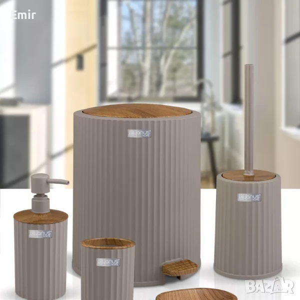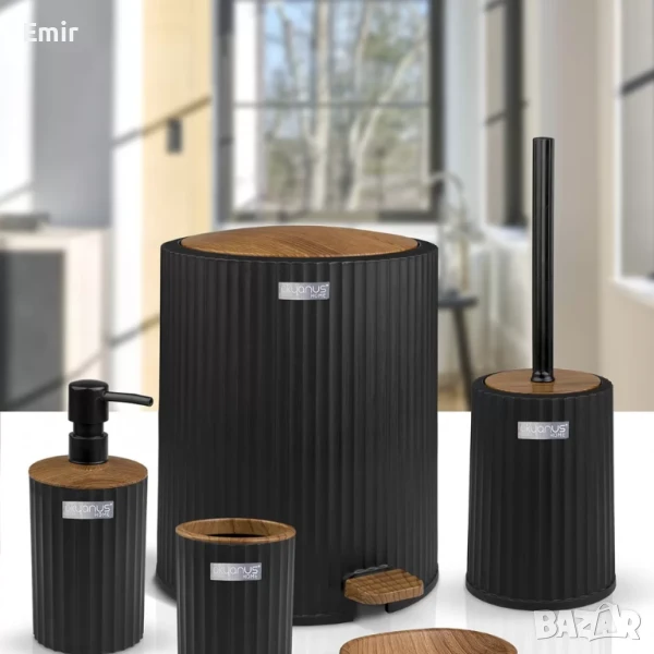 сапунерка, четка за тоалетна, и кошче за отпадъци с педал.