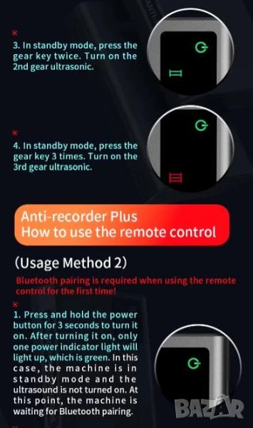 * Устройството е в комплект с Блутут дистанционно с мини размери! Т. е. можете да го активирате, невидимо с мини дистанционното, след като сте го поставили преди това в режим на изчакване.