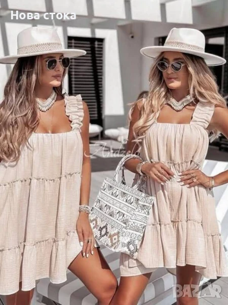 Свободна лятна рокля в Бяло и Бежово → Обява 50892637