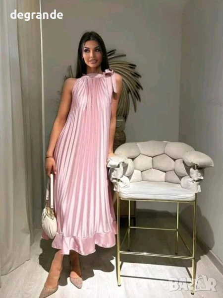 Сатенена плисирана рокля в РОЗОВО БЯЛО БЕЖОВО → Обява 50892671