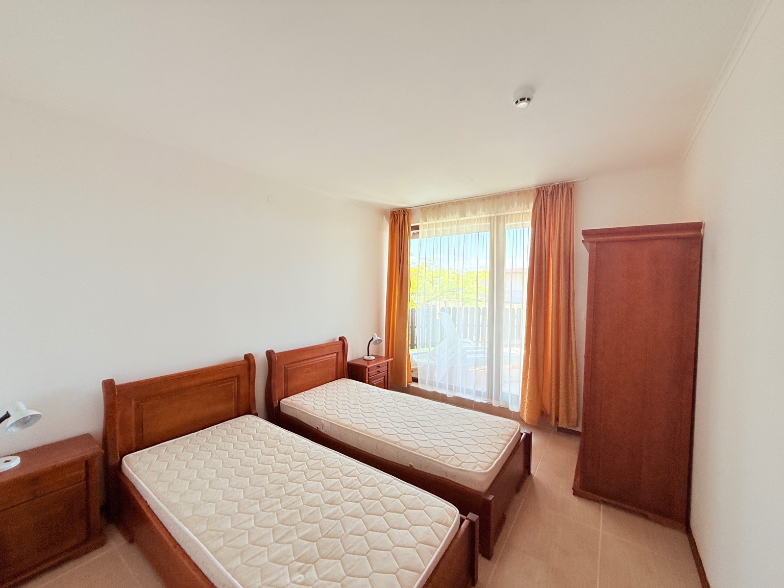Обзаведен апартамент с 2 спални в комплекс от затворен тип Бей Вю Вилас в село Кошарица, само на 2 км от популярния морски курорт Слънчев бряг, на 3 км от плажа, на 1 км от автобусна спирка, в близост до магазин за хранителни стоки, на 100 метра от кафенета и ресторанти, на 35 км от Бургас.
