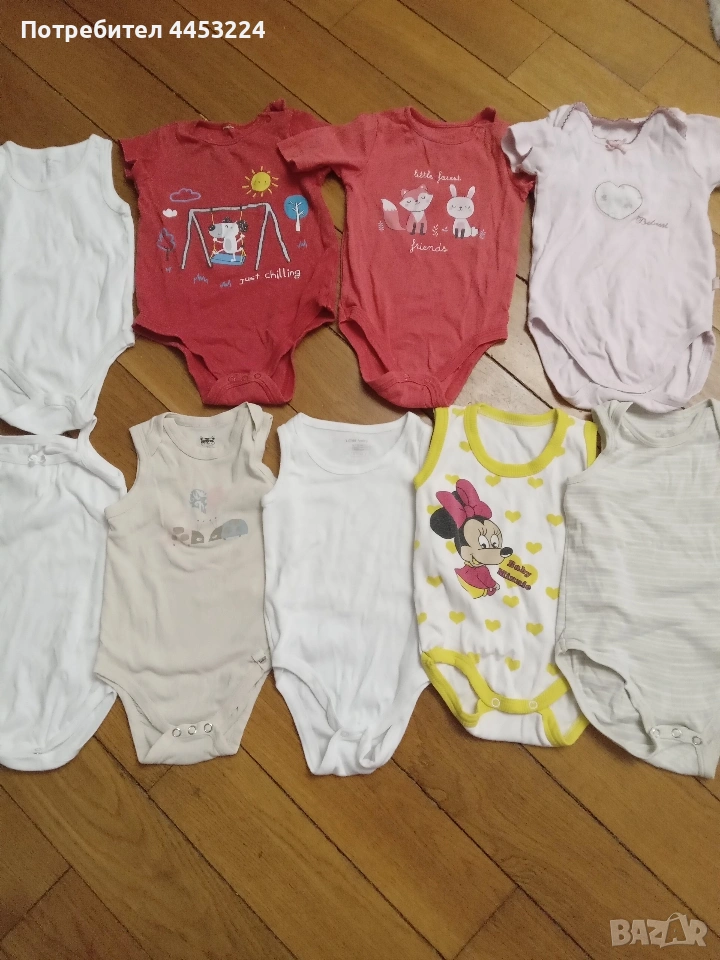 Всичките са в много добро състояние, до бодито с калинката всичките са за възраст 3-6мес., калинката е за 0-3мес. следващото с кученцата е за 9-12мес.,следващите четири са за 12-18мес.На петнадесетата и шестнадесетата снимка са за 12-18мес. 18-24мес.На седемнадесетата снимка са за 2-3год.Потничето, също е за 2-3год. Всичките са по 1лв.