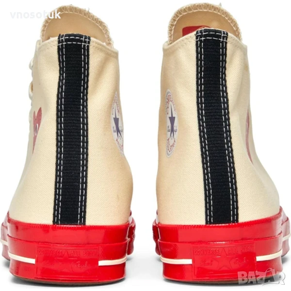 ЛИМИТИРАНА СЕРИЯConverse X Comme des Garçons Play Chuck 70 Hi Canvas A01794C Pristine/Red/EgretПредставяме ви маратонките Comme des Garçons PLAY x Converse Chuck 70 High Pristine / Red. Създадени в сътрудничество с Converse, тези високи маратонки се отличават с безупречна и червена цветова комбинация, която добавя смел обрат към класическия силует на Chuck 70. Изработени от първокласни материали, тези маратонки са не само стилни, но и издръжливи. Идеални за тези, които искат да направят впечатление с обувките си, тези маратонки са задължителни за всеки ентусиаст на сникерсите или уличната мода.