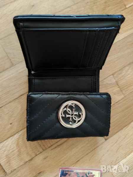 Черно портмоне Guess. Има забележки, снимани са. Затова е на тази цена.