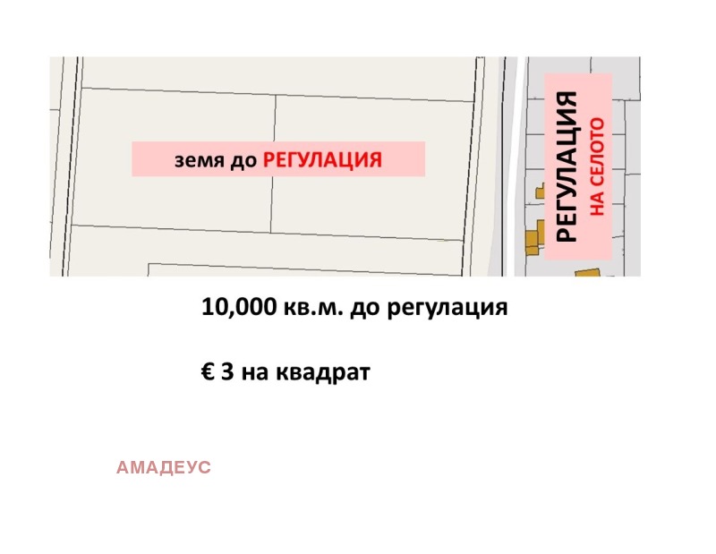 Продава се земя с настоящ статут земеделска, но реално до регулацията на селото. Съответно за урегулиране за стопански цели или за ползване предимството на наличие на улица до имота