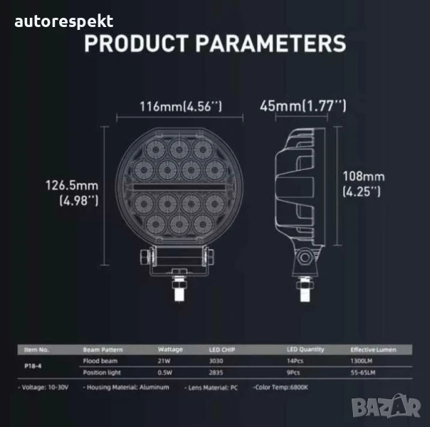 Халоген с двоен LED дизайн, ефективно елиминира слепите зони.