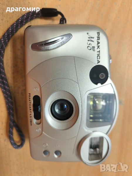 продавам лентов фотоапарат, много запазен, работи,без следи от употреба,с оригинален кожен калъф, PRAKTICA M50BF, работи с две батерии АА по 1, 5 v, имам още много други фотоапарати, камери, обективи, чанти, светкавици, батерии, зарядни устройства, касети, филтри, ремъци, ленти, при закупуване на повече неща отстъпка