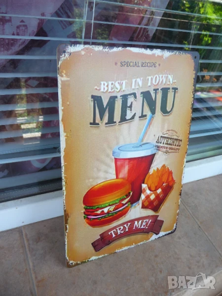 Метална ламаринена табела - Burgers Menu.