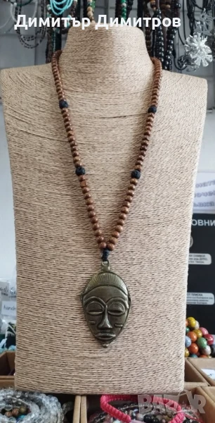 Гердан с африканска маска, вулканичен камък и дървени мъниста. Бижута Луди гъби. → Обява 50894626