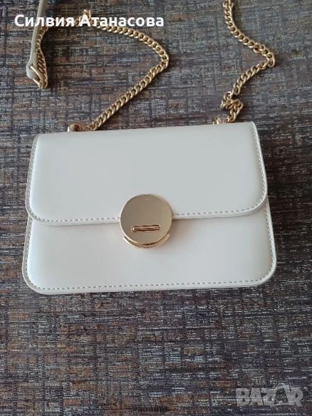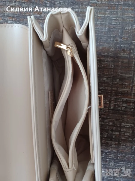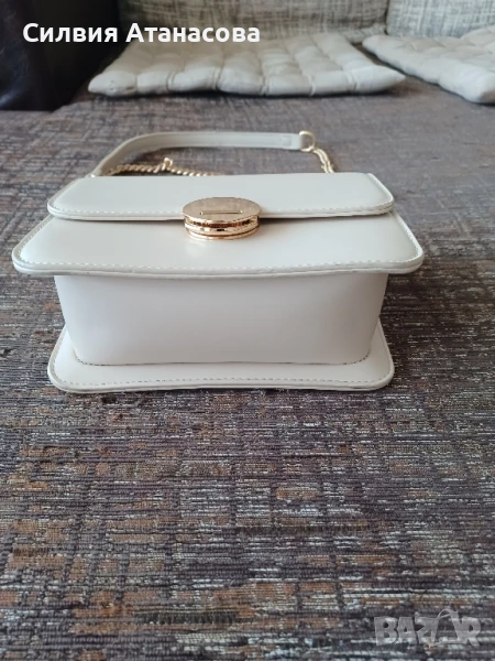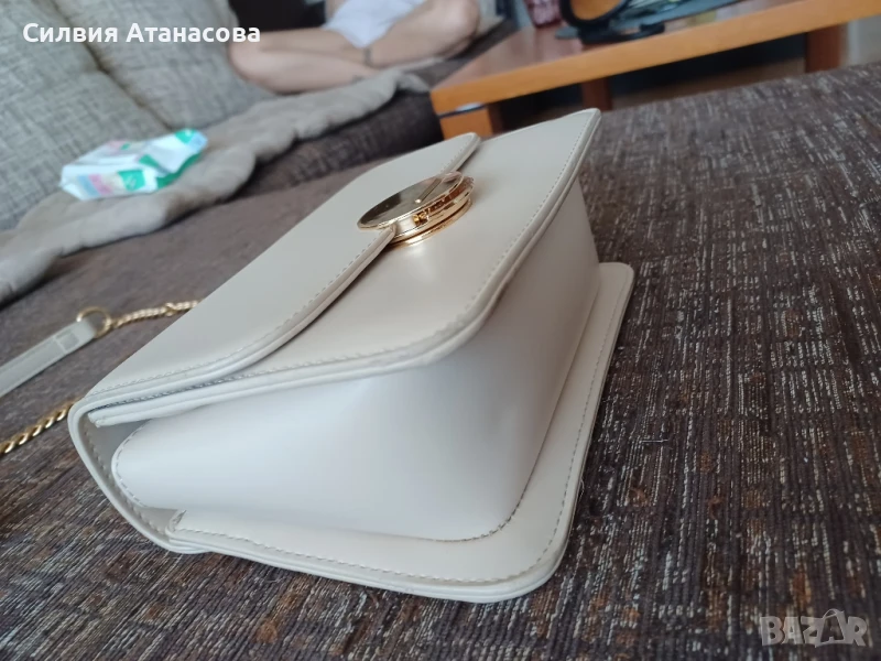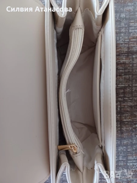 Дамска кожена чанта бежов цвят, размери В/Д/Ш 14/19/7, нова, без никакви забележки.