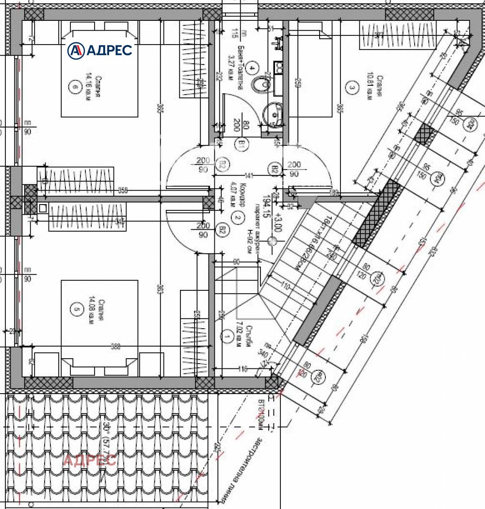 АДРЕС предлага новострояща се къща в с.Звездица. На първи етаж са разположени входно антре, просторна дневна с кухненска част, килер, тоалетна, бойлерно помещение. Пред дневната е предвидена голяма, покрита веранда . На втори етаж са разположени три спални и просторна баня с тоалетна.