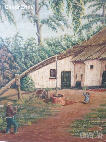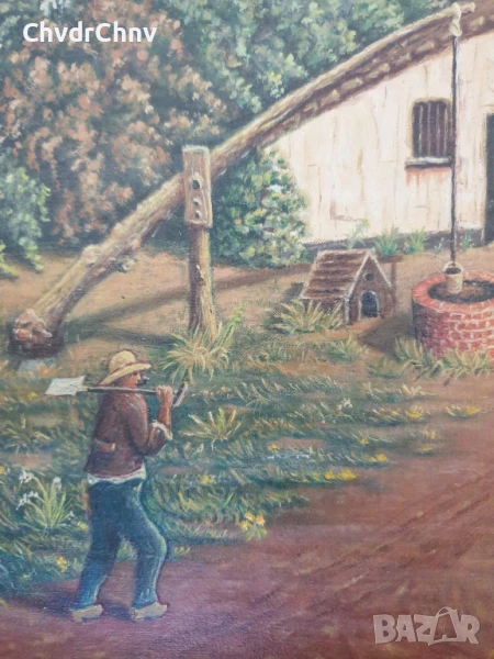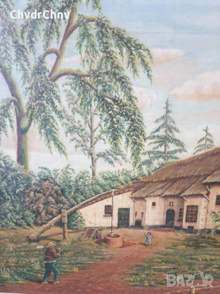 Техника масло върху платно (отлично състояние), запазени бои, масивна дървена рамка (широка и тежка, от качествено дърво), подрамка със стабилизиращи клинове в ъглите.