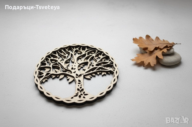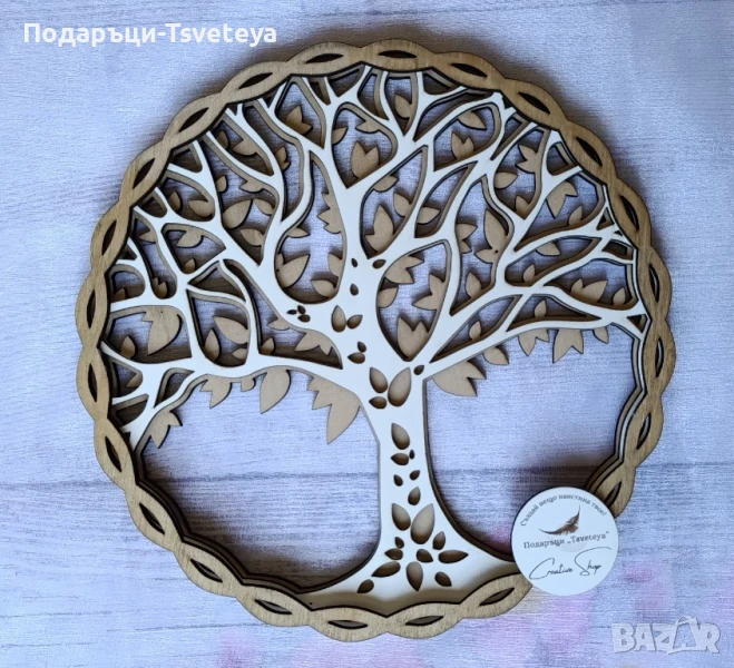 🪵 Дървена Декорация "Дървото на Живота" – 28 см 🌳