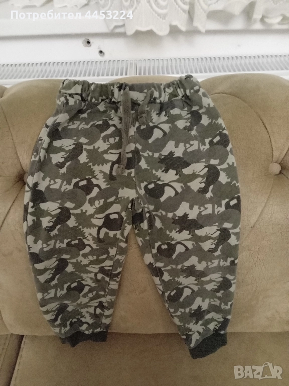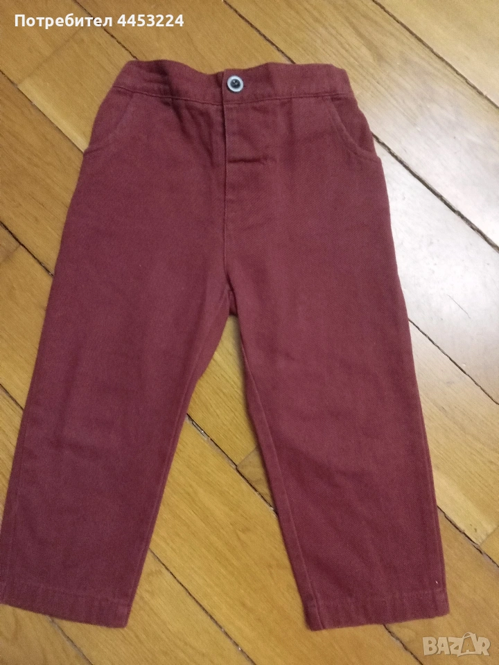 В идеално състояние са, тъмно синия костюм е за 12-18мес.,другия е за 2-3год. и двата са по 15лв. Синият и кафявият панталон и дънките са за 2-3год, на цена 5лв.Червеният панталон е за 3-4год. на цена 5лв. Зеленият панталон и последните два са за 3-4год. на цена 3лв.