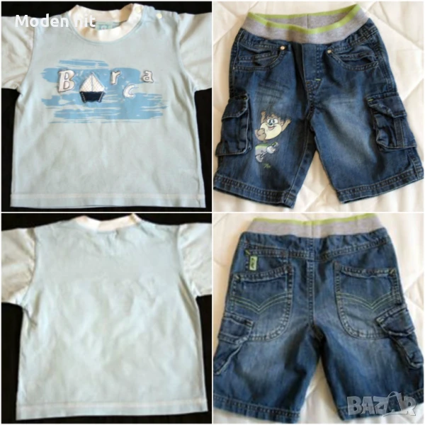 Външно без следи от употреба. 100% памук. По етикет са размер 12-18 м./86 см. Дължина: 51,5/32,5 см., талия с ластик и копчета за корекция: максимум до 27,5 см., ханш: 32,5 см.